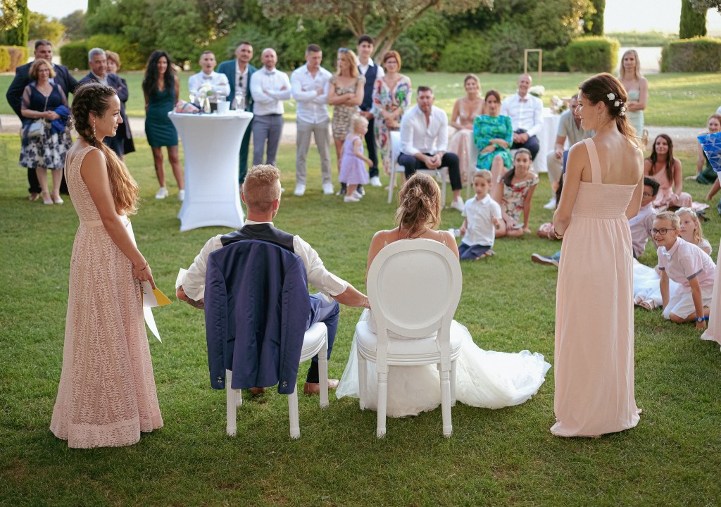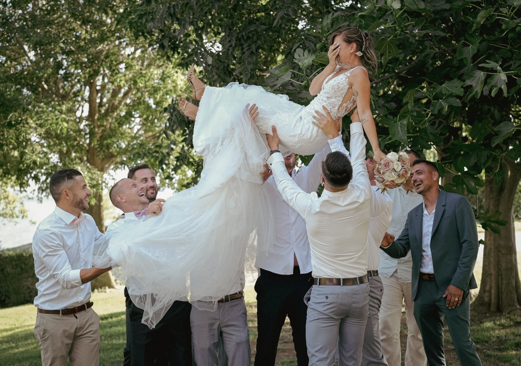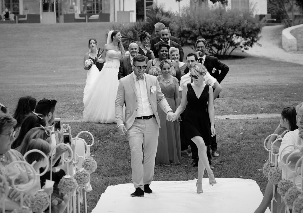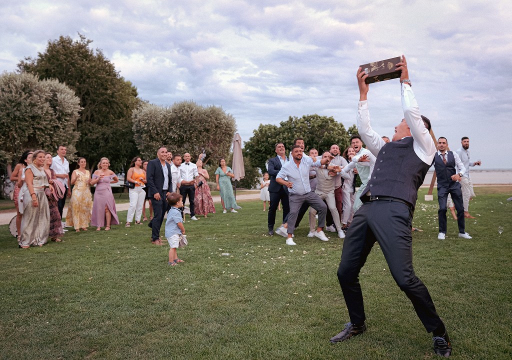 Les photos de groupe avec vos invités sont incontournables, même si cette séance photo « posée » peut parfois paraitre fastidieuse ! De préférence faite pendant le vin d’honneur, elle permettra ainsi de ne pas casser le rythme de ce dernier, et pourra même créer une dynamique pour insuffler des photos à la fois tendances et décalées (en complément des photos traditionnelles) et bien sûr, sans oublier les ambiances…