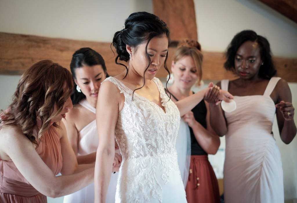 Les préparatifs sont un moment plus intime pour le couple, qui se découvre l’un et l’autre, après, bien souvent en début de cérémonie… pour la surprise de la robe ! Les photos doivent être alors 100% naturelles, dans un esprit de pur reportage spontané : bienvenue dans les coulisses du mariage !
